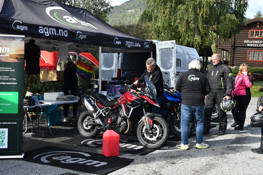 Når du ikke var ute og prøvde sykler, kunne du rusle mellom standene. Her ble det vist fram alt fra airbag-vester til reiseopplegg i Afrika. Førerutvikling stilte med tips, NMCU med politikk, og WIMA med miljø og inkludering. Mellom teltene dukket små øyeblikk opp: en fyr som testet sittestilling på en ny adventure, en annen som meldte seg inn i WIMA, og en tredje som endelig fikk svaret på hvorfor sykkelen hans «piper når jeg gjør sånn».