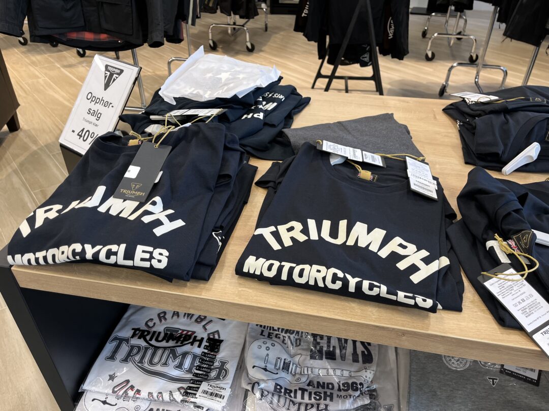 AMD er I full gang med å rigge seg for fremtiden etter sjokk-meldingen 0g oppsigelsen kom fra Triumph. Nå skal det ryddes plass til fremtiden med sterk fokus på KTM og bruktmarkedet. og da skal all bekledning og kjøreutstyr ut fra Triumph ut. Prisene er allerede satt ned med 40% så her kan man gjøre noen skikkelig gode «dealer» iht Trump vokabularet.